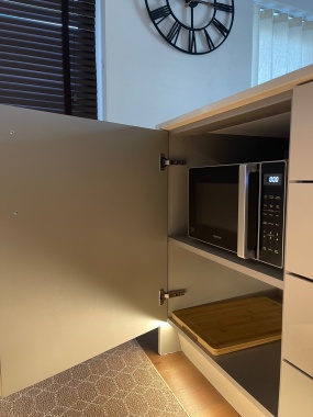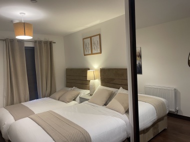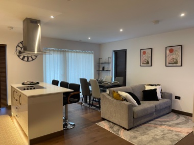 This well furnished executive apartment contains two spacious double bedrooms, with family baths and Shower ensuites. The Lounge offers an improved OLED television and streaming services. It also boosts a fully integrated kitchen appliances with dish washer, oven, washing machine, fridge/freezer, dinning set, micro wave, toaster, airer, Iron and ironing board, vacuum cleaner, etc. The apartment also offers beddings, towels and laundry services.